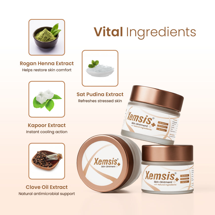 Xemsis Cream is a dermatologist-recommended psoriasis treatment cream designed to support daily care for plaque psoriasis and chronically sensitive skin. It helps soothe common psoriasis symptoms such as dryness, itching, redness, and scaling while supporting long-term skin barrier health. Suitable for psoriasis on hands, feet, and overall skin, the cream is also gentle enough for scalp psoriasis care when used as advised. Its phyto-extract–based formulation absorbs easily, making it appropriate for regular use across different types of psoriasis, including cases where skin discomfort may coexist with psoriatic arthritis treatment routines.