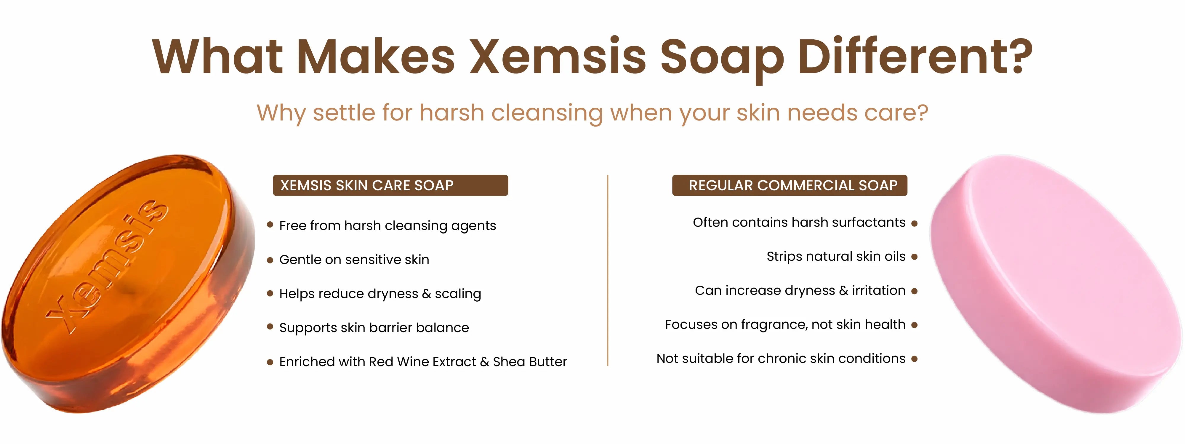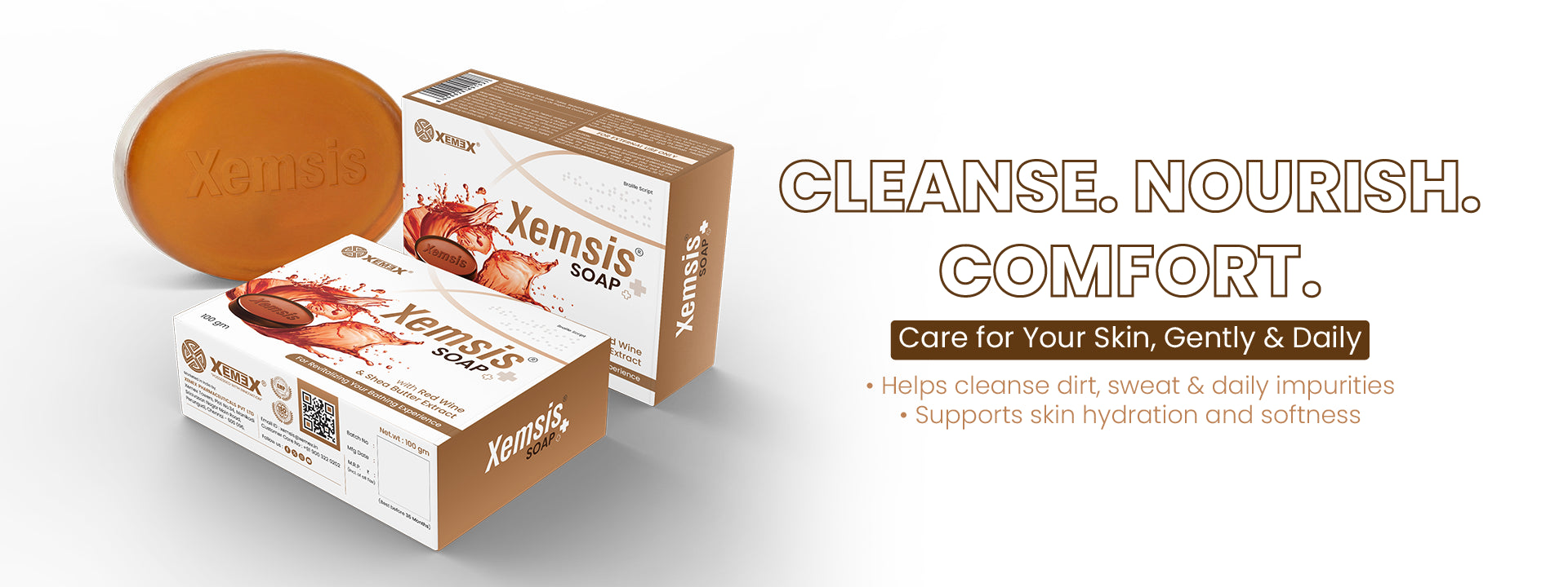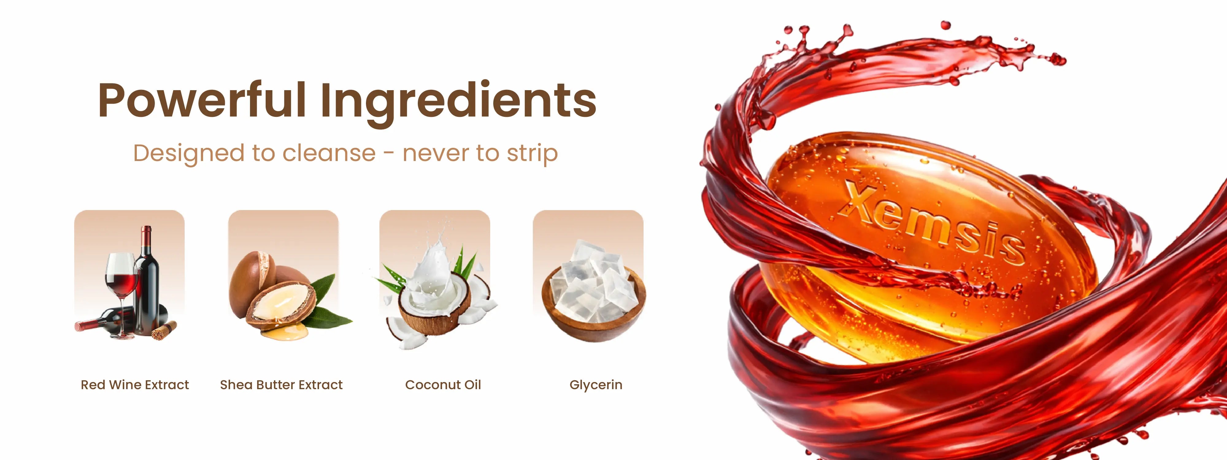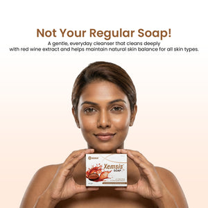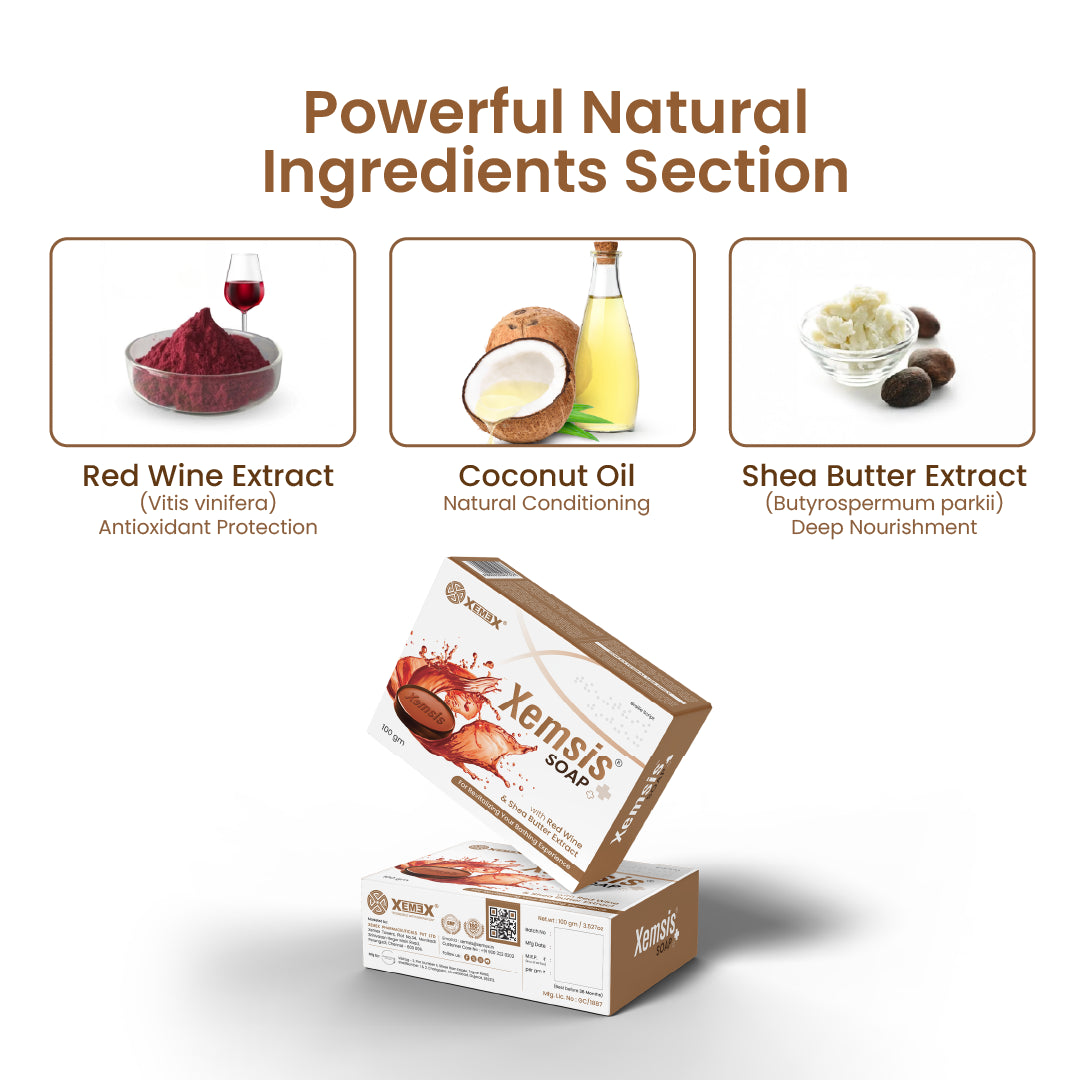 Xemsis Red Wine Soap is a thoughtfully crafted, natural red wine soap designed for gentle daily cleansing and skin comfort. This chemical-free red wine soap combines antioxidant-rich Red Wine Extract with nourishing Shea Butter to help cleanse, hydrate, and support healthy looking skin. The red wine soap with antioxidants helps protect the skin from environmental stress, while the shea butter red wine soap formula maintains moisture and softness after every wash. Suitable for regular use, this shea butter soap leaves skin feeling clean, balanced, and refreshed without harshness.