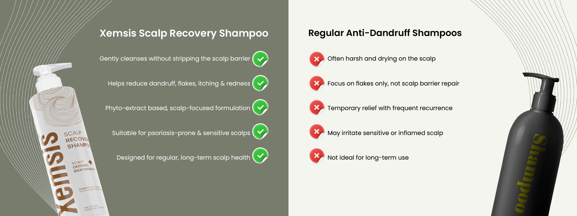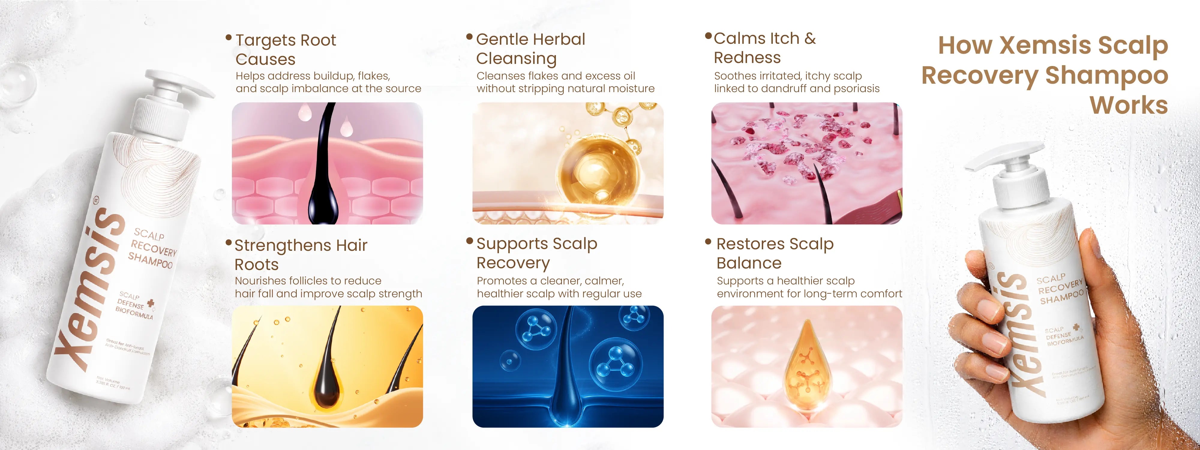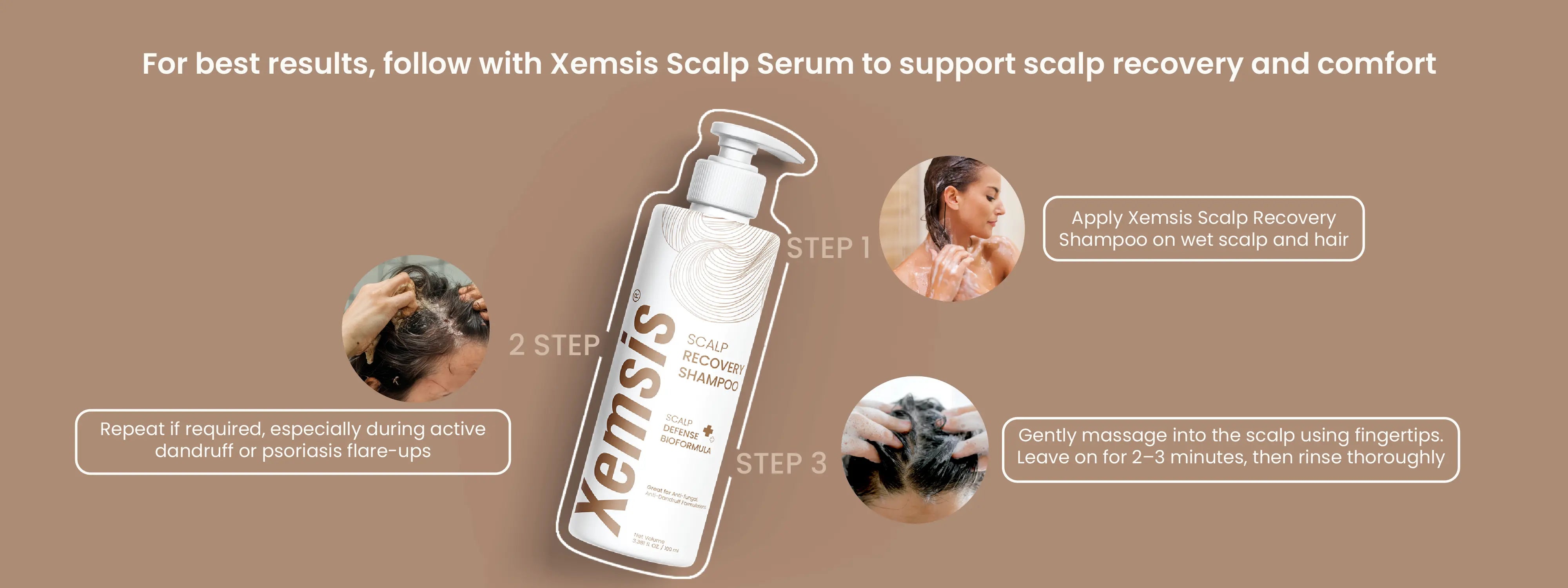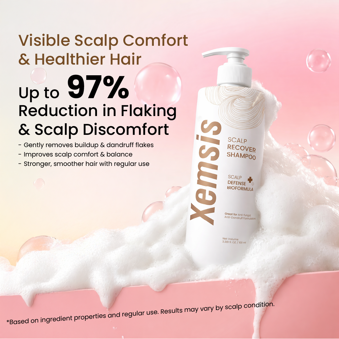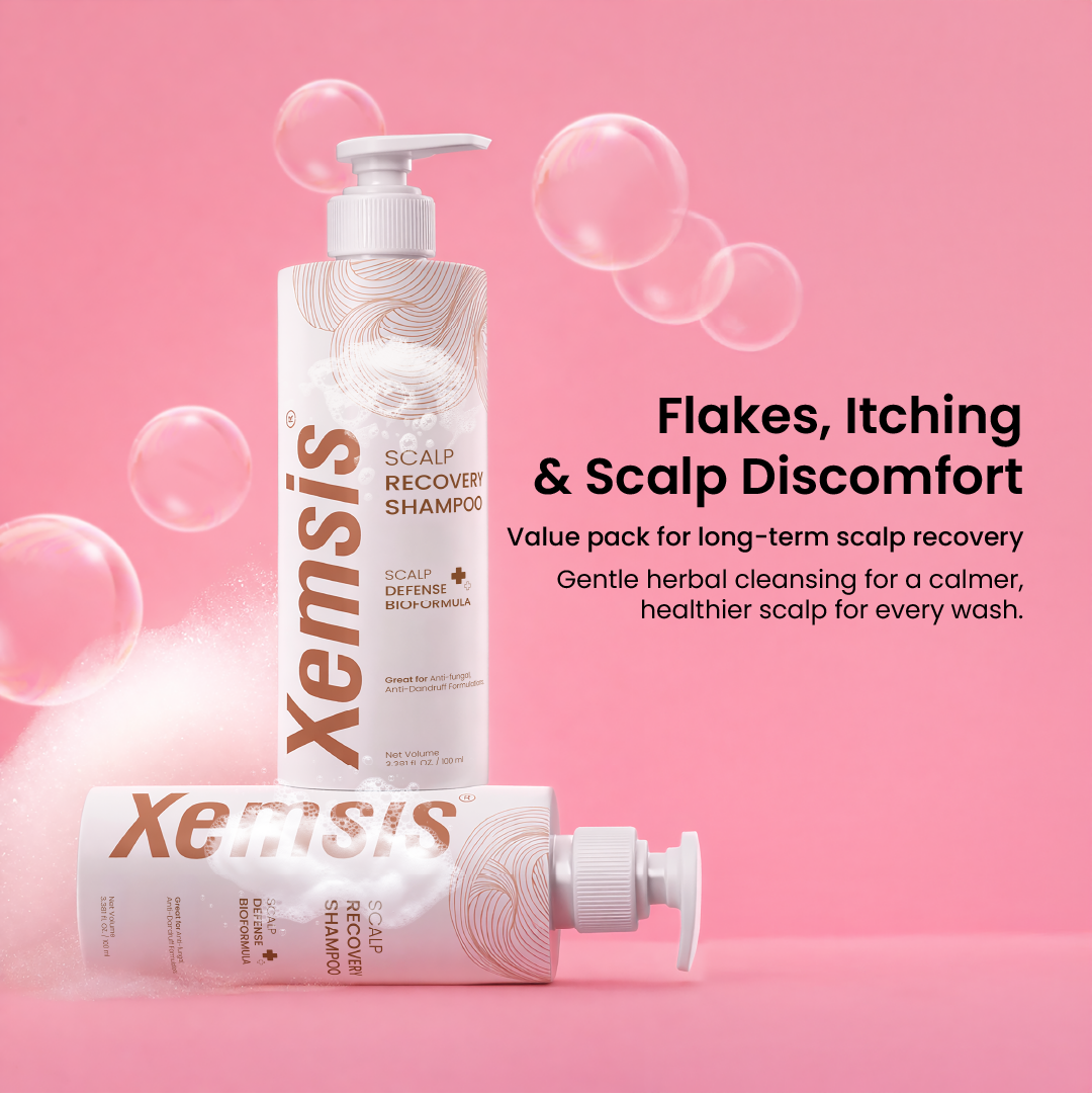 Xemsis Scalp Recovery Shampoo is a gentle, plant-based psoriasis shampoo designed to support daily cleansing of psoriasis-prone and sensitive scalps. This scalp psoriasis shampoo helps reduce flakes, itching, redness, and buildup while maintaining the scalp’s natural moisture balance.